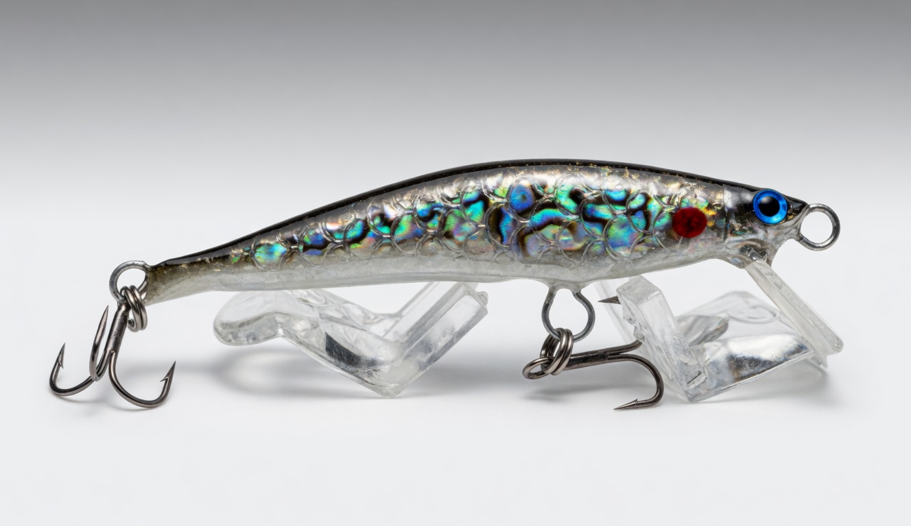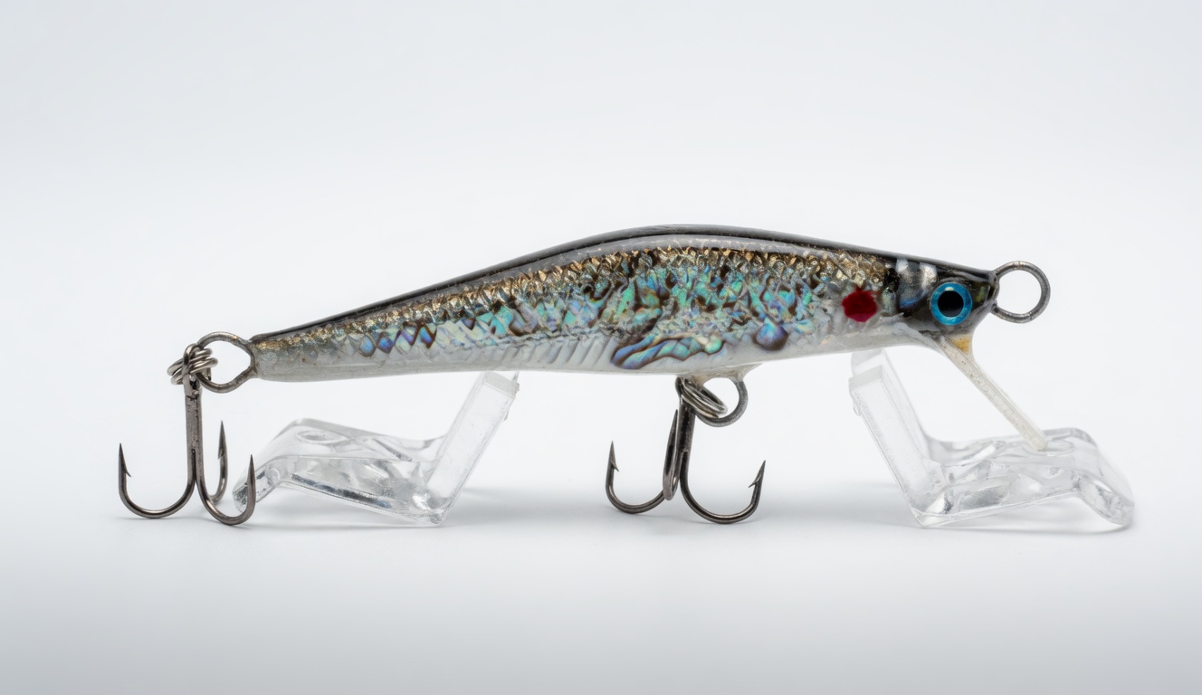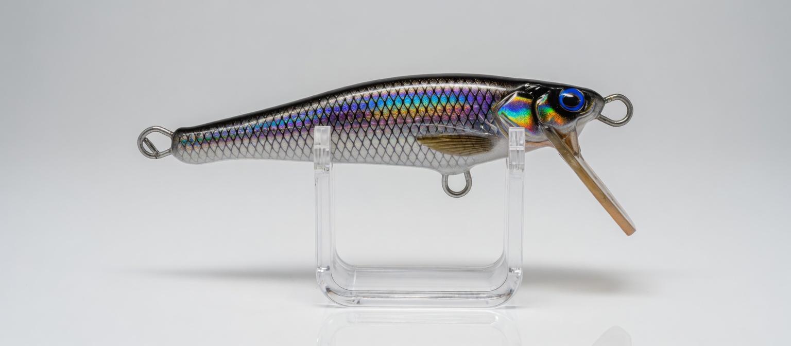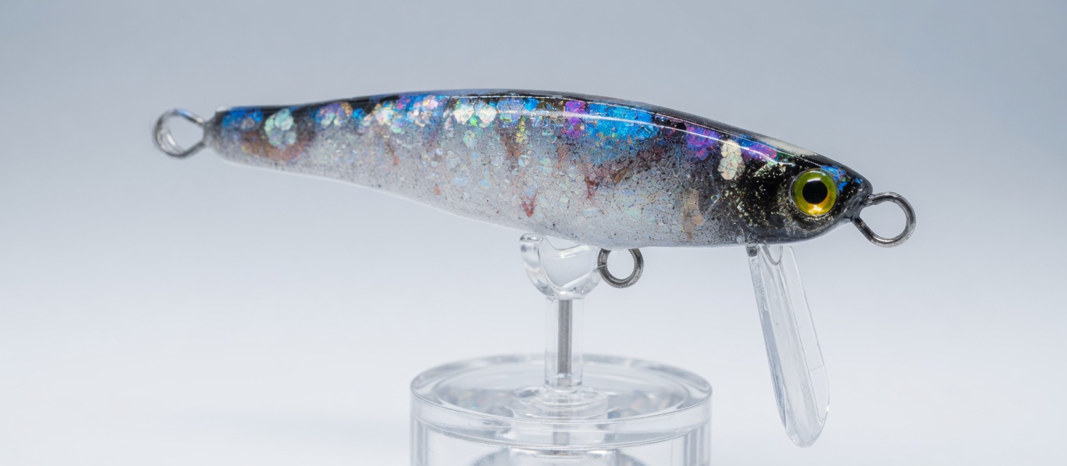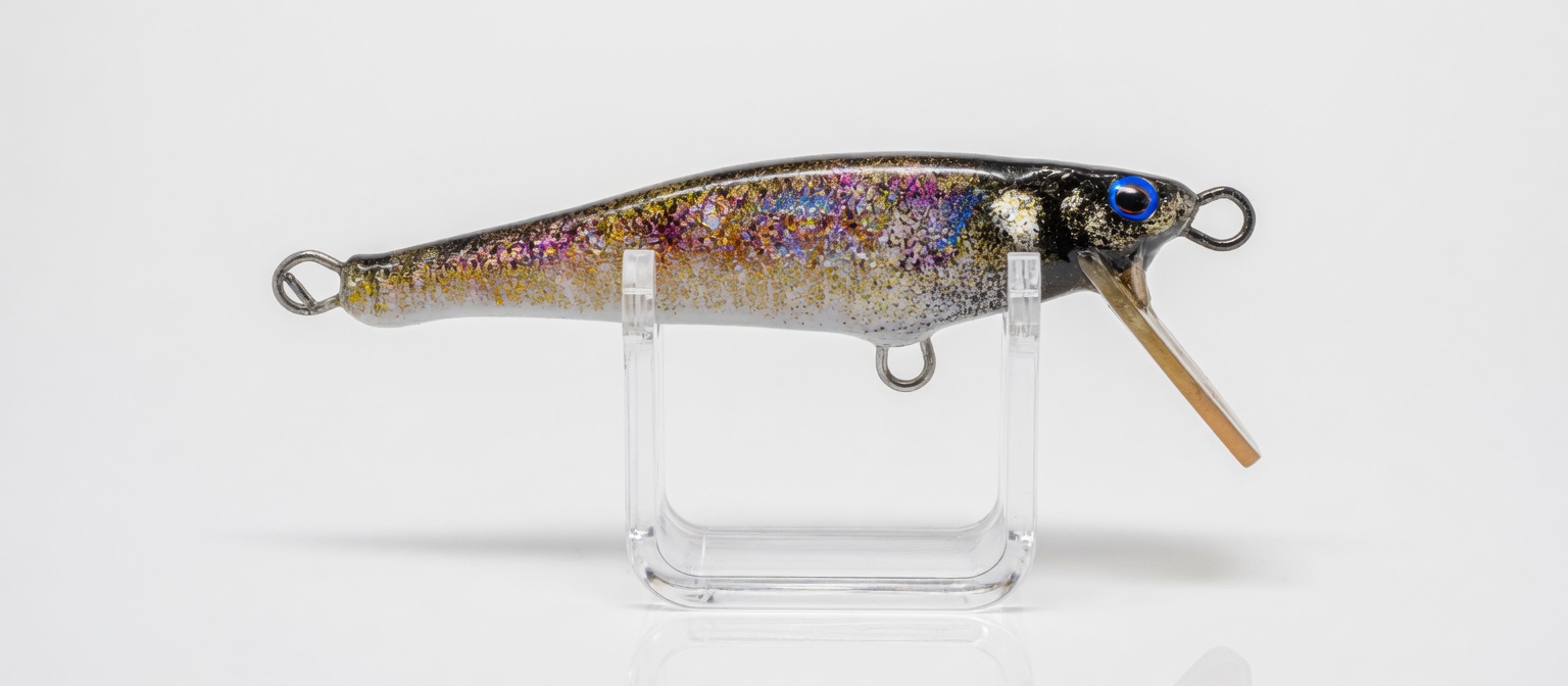 50 mm wooden fishing lure (2–7 g) designed for a wide range of predators including trout, perch, asp, chub, zander, pike, and bass. Each lure is individually handmade and meticulously finished using premium abalone shell veneer, layered with acrylic and metallic paints to replicate the natural shimmer, color shift, and lifelike appearance of small baitfish.